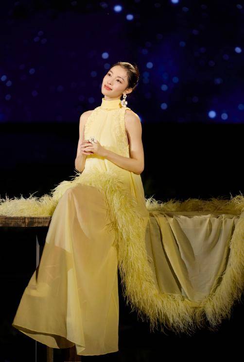 一袭鹅黄色长裙的侯佩岑,端庄大气,一开口就展现了扎实的主持功底,字正腔圆、台风稳健,完全不输任何一位央视主持人。
