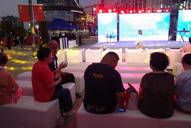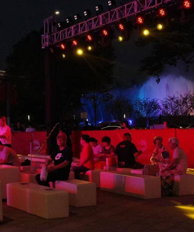 王重婷阿姨也从胶州路的家里早早赶来,歌迷们在台下畅聊等待,看着夜色逐渐上来,“心情就是好开心,这里我们都很熟悉,经常在身后商场的阿迪、耐克、星巴克购物,一会舞台结束还想看看街艺节的非遗市集与表演。”