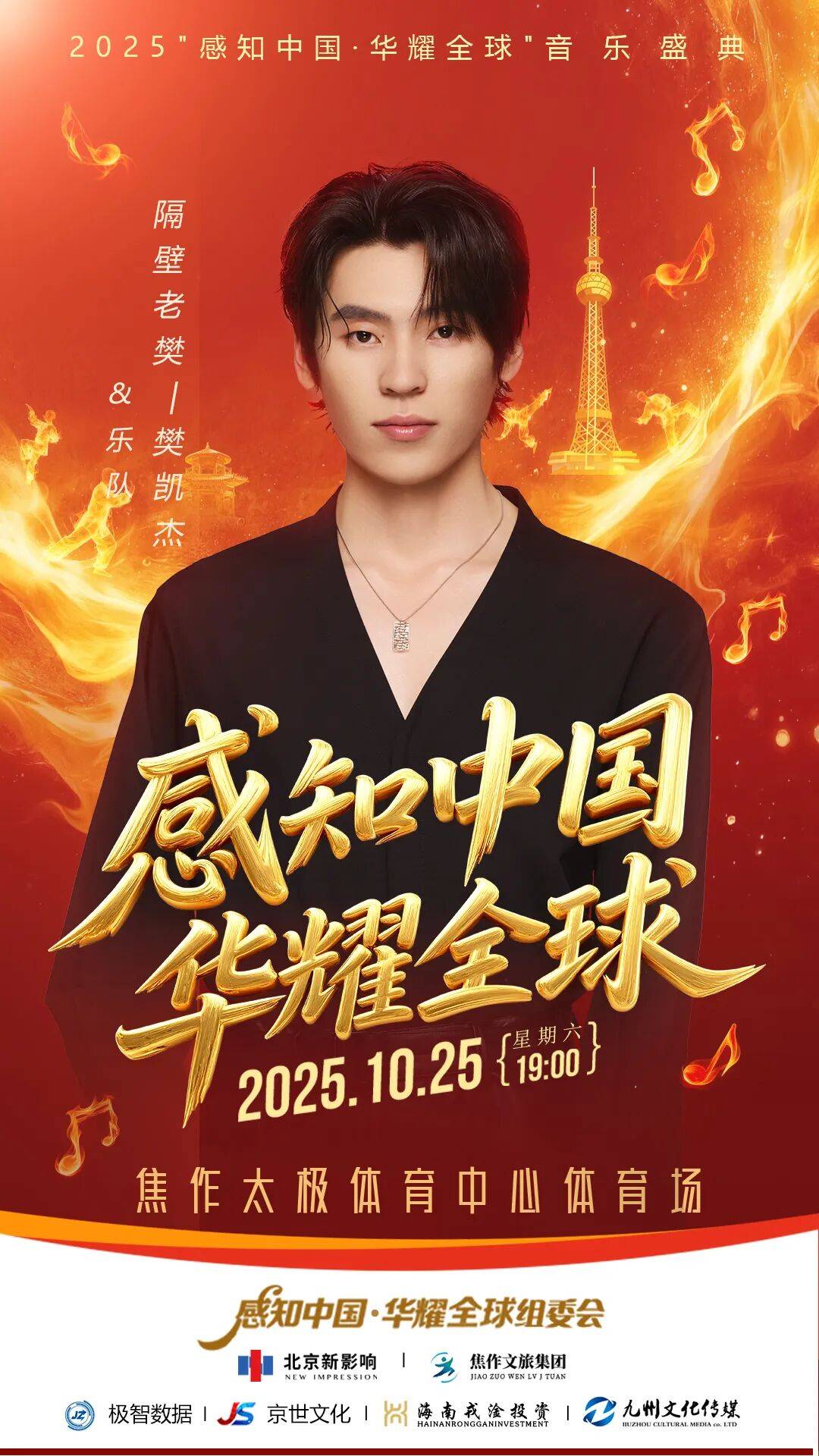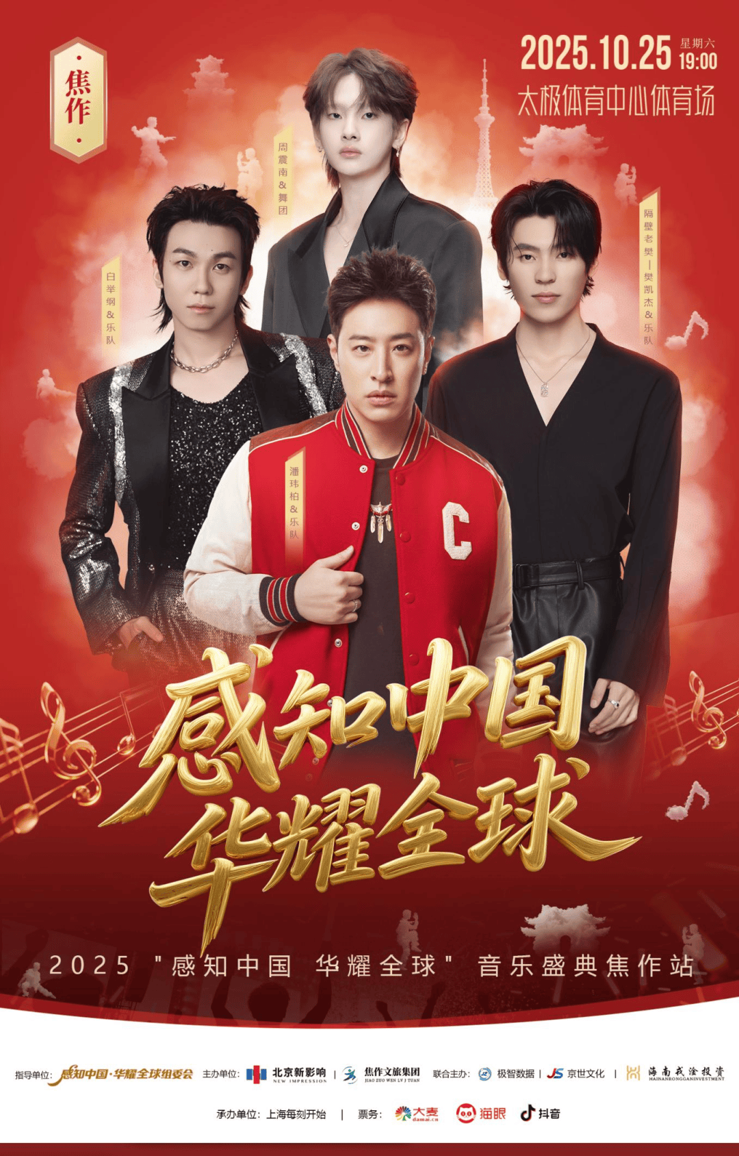 一股澎湃的音乐新浪潮即将席卷太极圣地!2025“感知中国·华耀全球”音乐盛典定档10月25日于焦作市太极体育中心体育场盛大举行。届时,潘玮柏、周震南、白举纲、隔壁老樊将携各自专属乐队登台,以多元音乐风格打破视听壁垒,为全城乐迷引爆一场充满热爱与能量的音乐狂欢之夜。