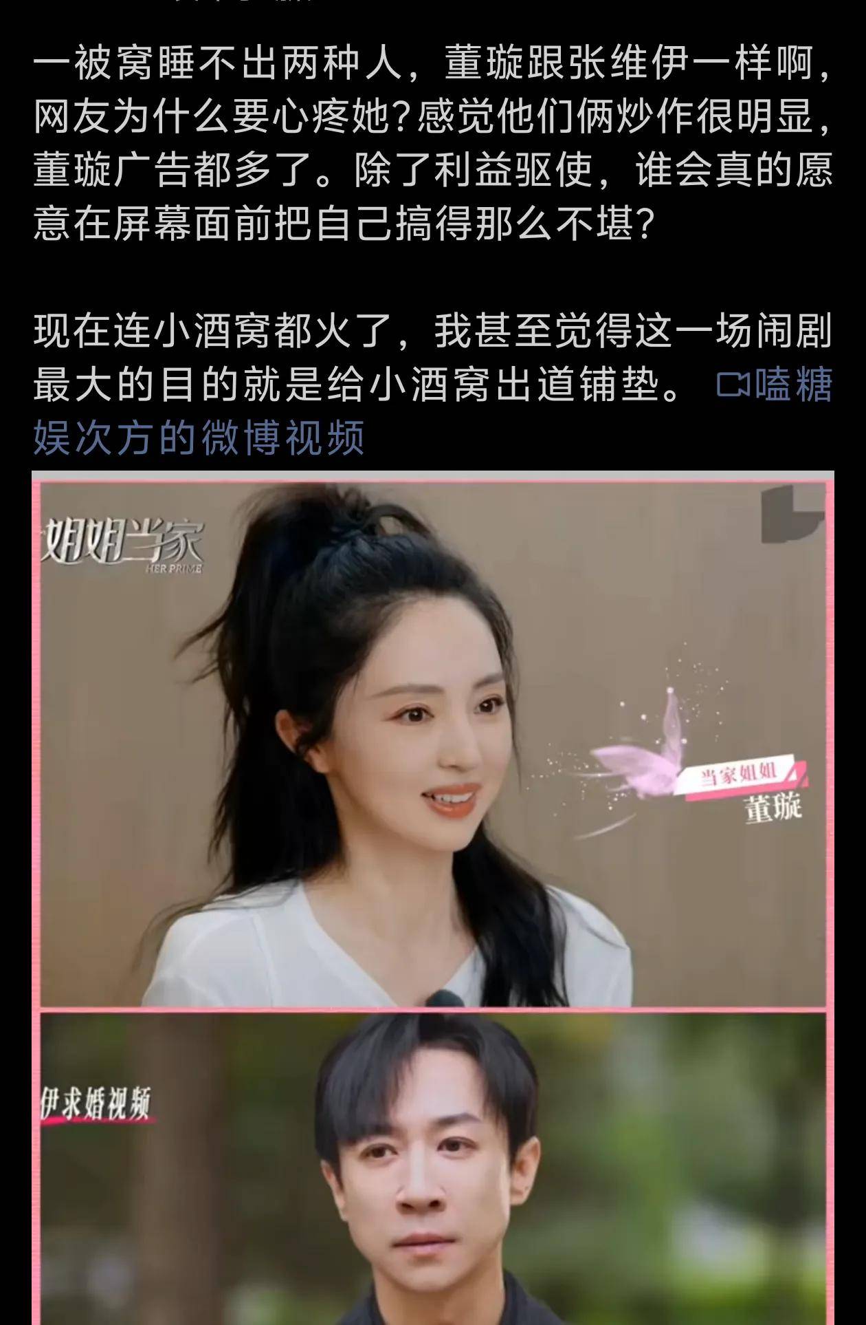 与其说张维伊是"拿不出手"的丈夫,不如说是精准选角的商业搭档。在影视寒冬中,这位无戏可拍的男艺人通过"软饭硬吃"的人设,轻松斩获百万级综艺报酬。而董璇方面,从酒店大堂保安的婚恋梗到高龄产子的话题营销,每条争议都精准转化为广告位的溢价筹码。