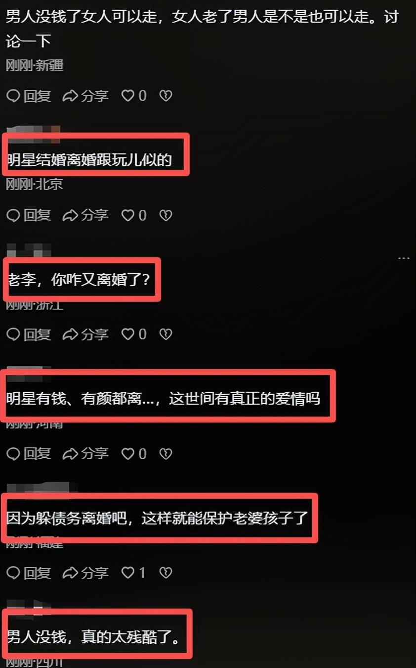 可到了李亚鹏这里,评论区的风向总有些不一样,很少有人深究两人之间的感情细节,反而更倾向于把目光落在金钱维度上。