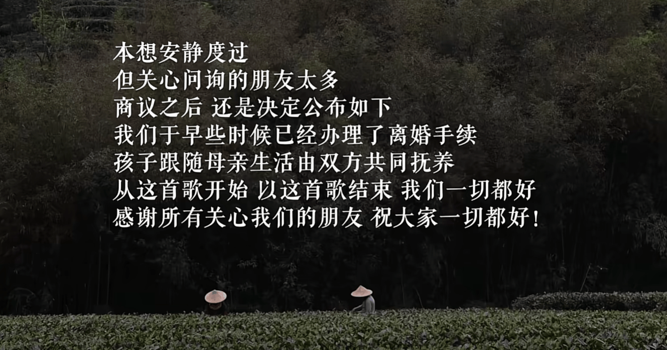 2025年10月14日:官宣离婚,孩子随母生活,文案从一家人整整齐齐变为共同抚养。
