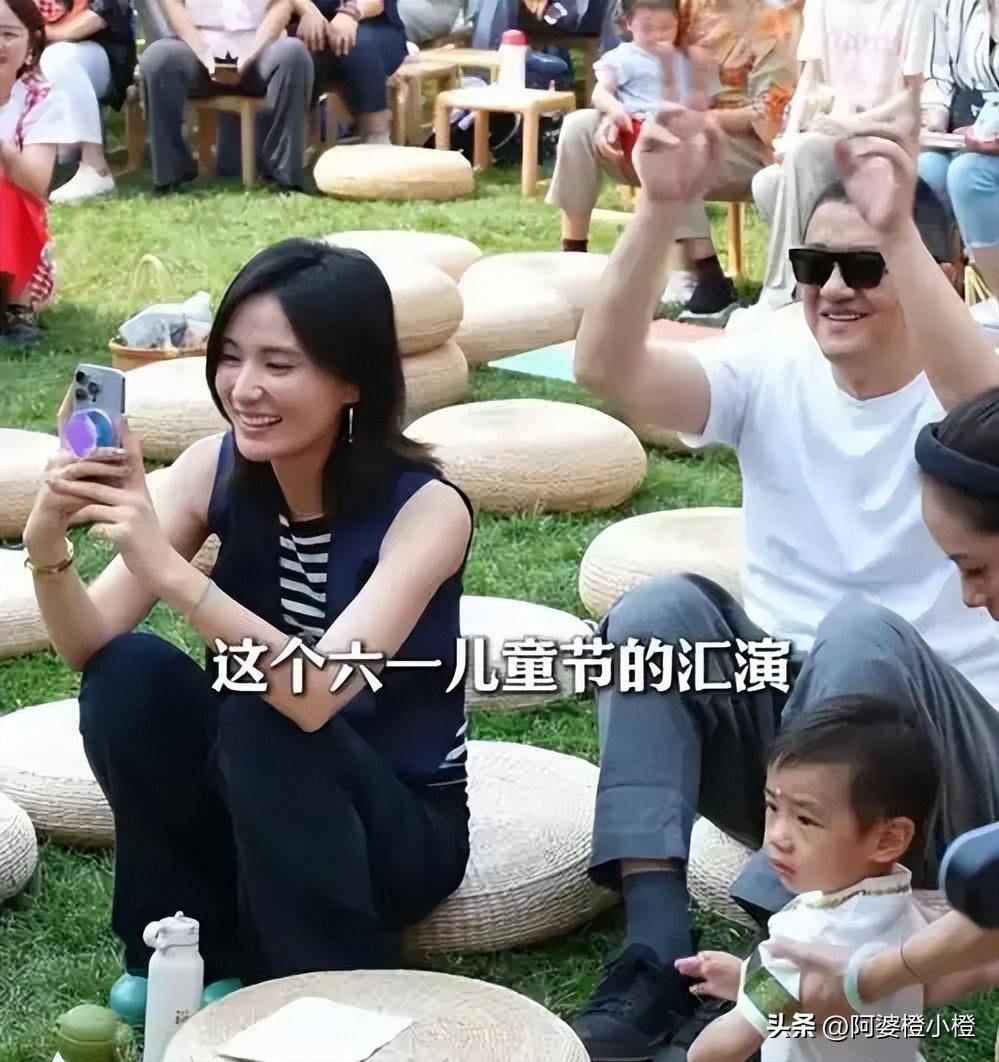 之后唯一一次同框,是在 6 月 1 好,因为女儿夏夏要第一次登台表演,俩人算是为了孩子凑到了一起。