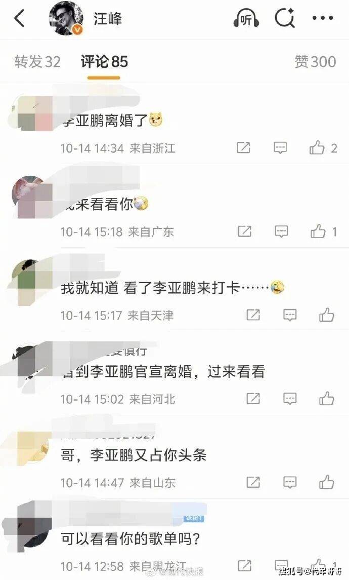 谁也没料到,离婚事件中最 “冤” 的竟是汪峰。李亚鹏官宣后,评论区瞬间被 “汪峰:这赛道你也卷?”“峰哥又被偷家了” 等调侃刷屏,甚至有人翻出他 “三婚三离” 履历,戏称 “摇滚教父在离婚赛道有统治级地位”。