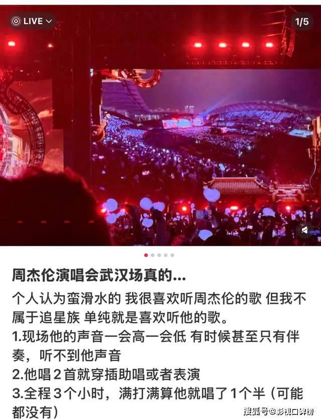 周杰伦今年在国内的"嘉年华"巡演演唱会,最近几场陷入了"划水"争议。多地观众反馈演唱会存在唱功下滑、环节注水等问题。