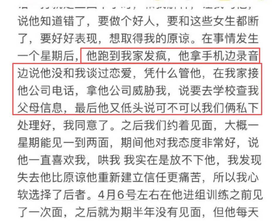 最后希望荣梓杉出来回应一下,也希望资本也好公司也罢,他才19岁,如果继续盲目维护掩盖,某种程度也是在害他,艺德跟人品挂钩,人品有问题的话,很难走的长远。才19岁就敢玩弄感情还打人,未来可得了?