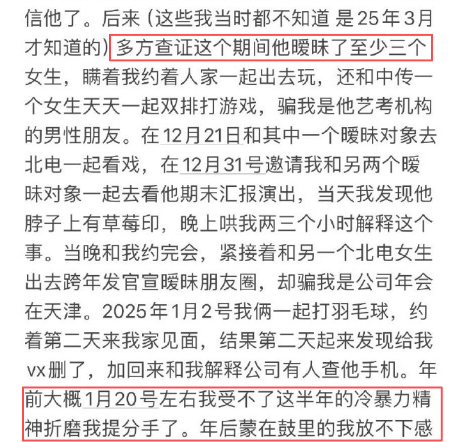 但之后荣梓衫情绪反复,又否认恋爱,还冲到女方家发疯,试图用各种方式威胁女方。而女方这期间发现荣梓衫出轨的女性当中还有童星演员。
