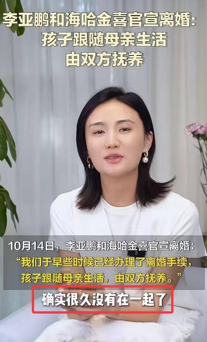 近日,娱乐圈再次爆出一则“离婚大瓜”:李亚鹏与他的二婚妻子海哈金喜正式官宣离婚。为了避免引发过多舆论风波,双方选择以共同录制视频的形式同步发布消息,堪称娱乐圈离婚夫妻罕见的“和平分手”示范。