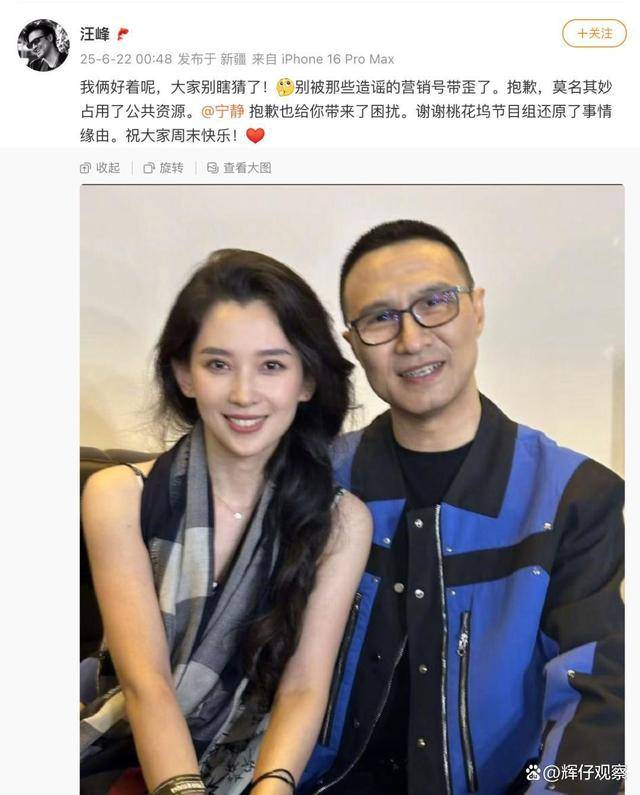 有段时间他和宁静的八卦传的满天飞,为了不让女友生气、受影响,他公开发文澄清,说俩人好着呢。