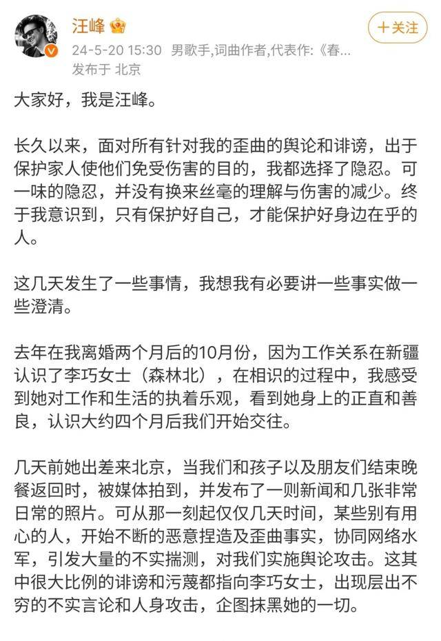 而且细看他的发文,就会知道俩人在汪峰离婚才俩月就认识了。