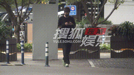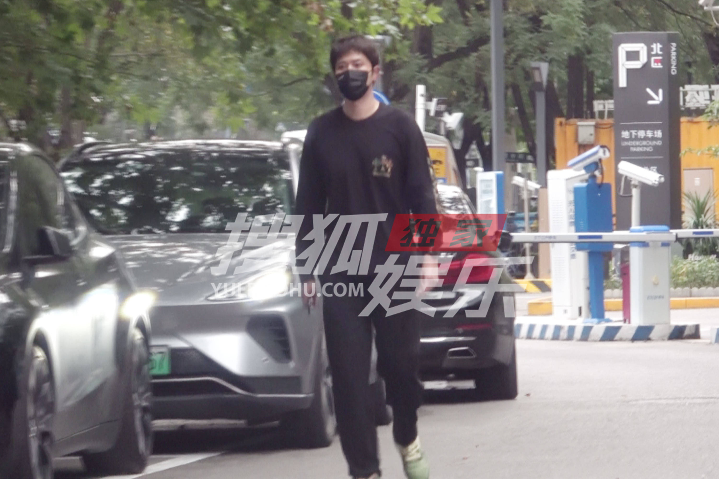 出门时,彭冠英低着头看手机可身高还是非常瞩目。