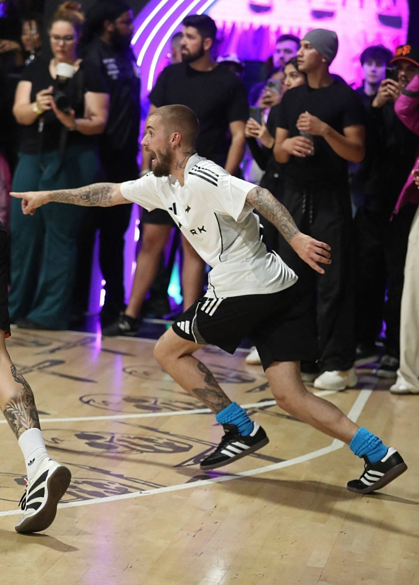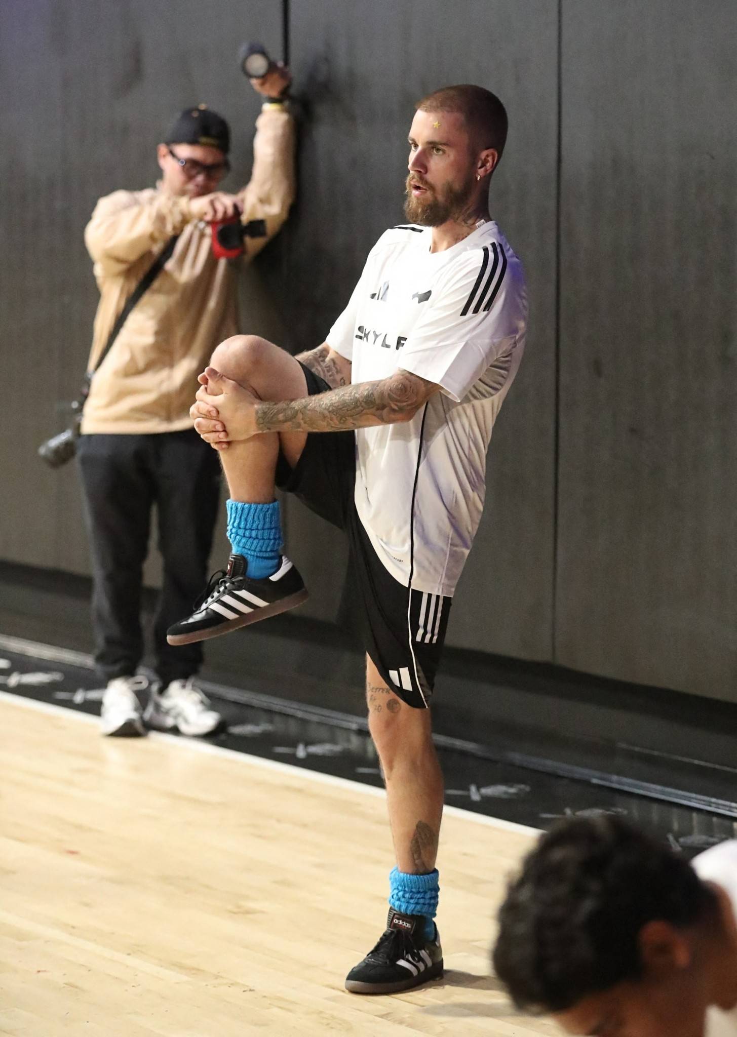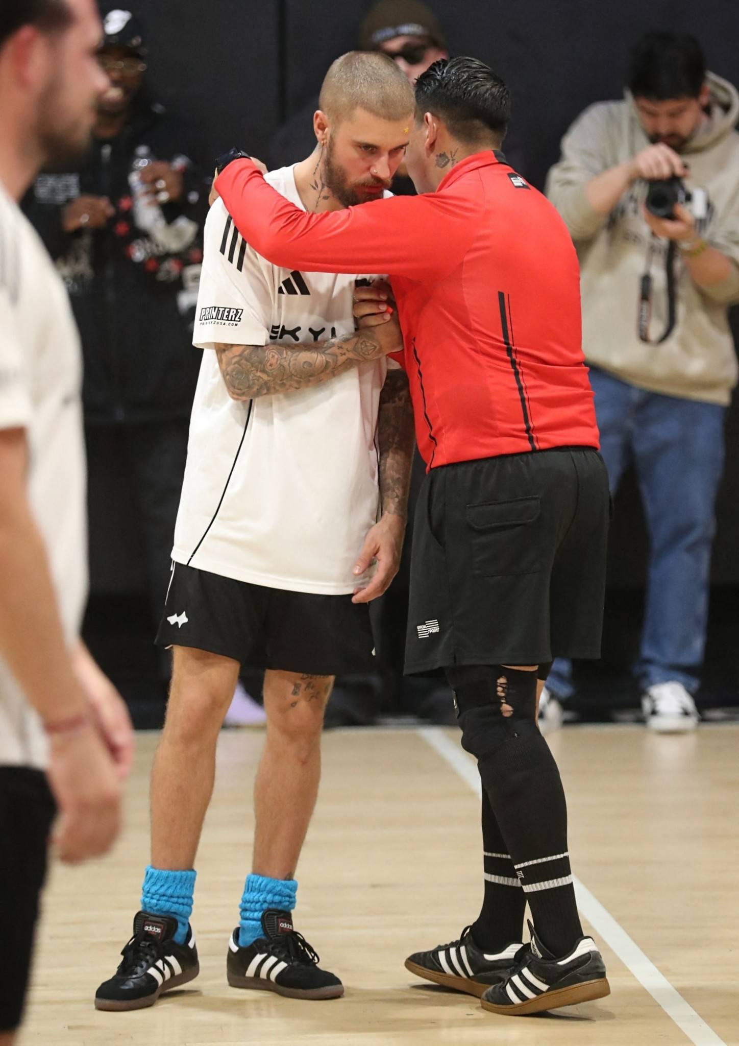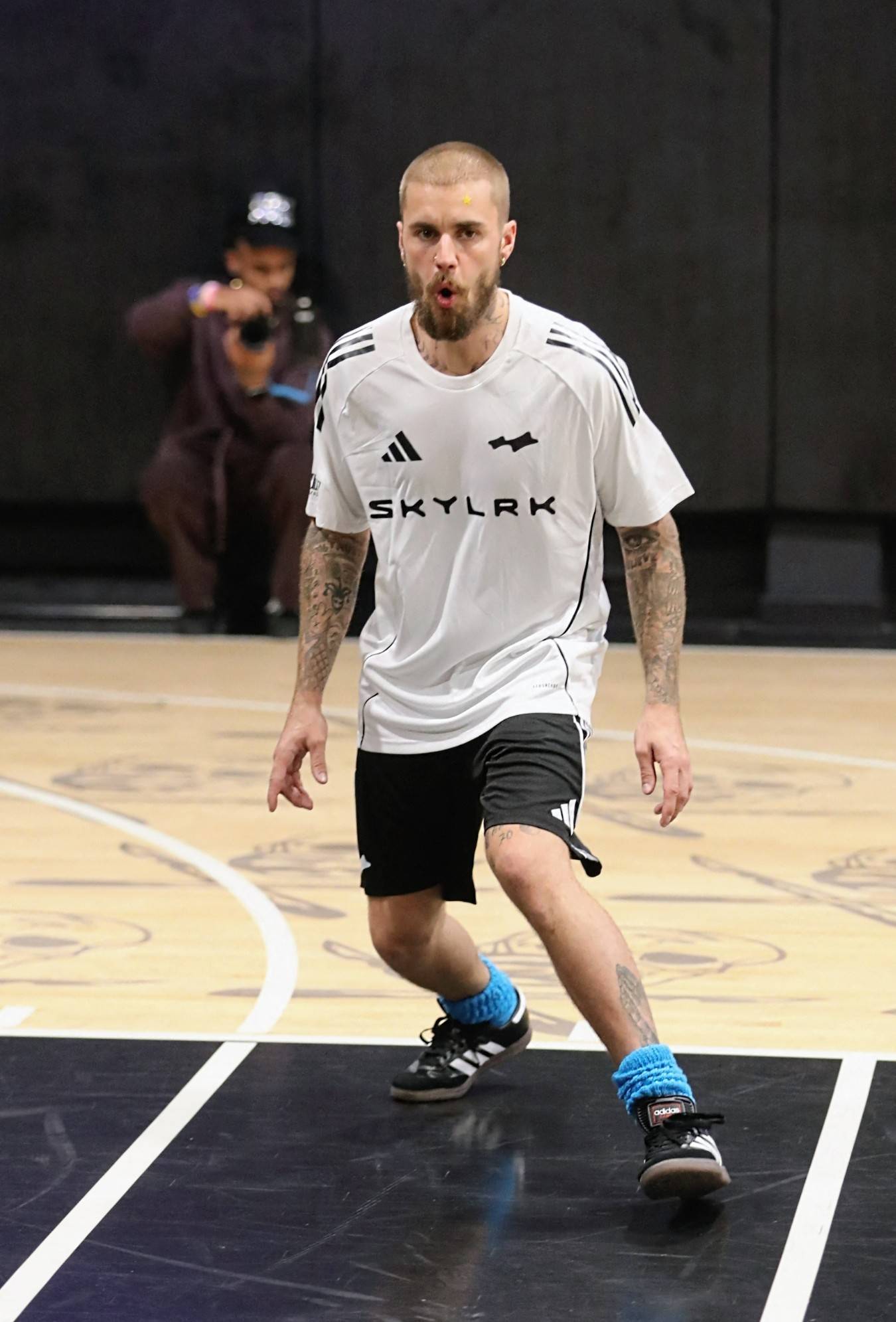 搜狐娱乐讯 (视觉中国/图)美国当地时间2025年10月14日,贾斯汀·比伯(Justin Bieber)身穿其最新服装品牌服装,参加一场室内足球比赛。
