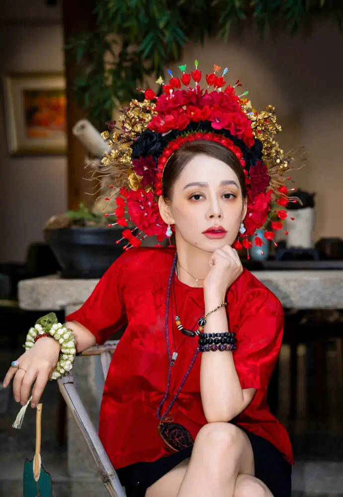 搜狐娱乐讯 近日,宁静晒出了一组自己的簪花大片。