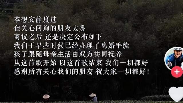 看官宣文案,双方是和平分手,未来会共同抚养孩子。