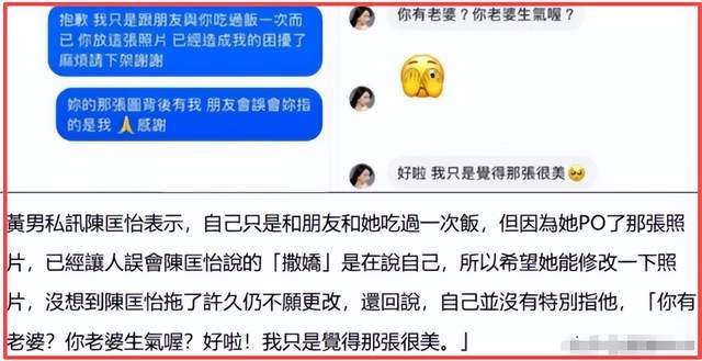 黄先生气不过,随后和记者爆料说,陈匡怡经常用言语骚扰他,还给他发穿着薄纱睡衣的照片。