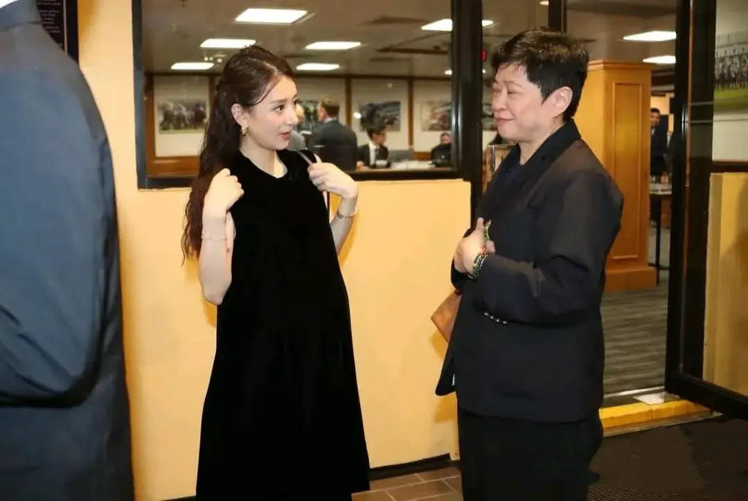现在的方媛,越来越有“天王嫂”的气场了。穿着黑色背心裙、挺着孕肚,出现在人流攒动的长河里,连郭富城的经纪人小美都和她热聊,看起来俩人关系也不错。