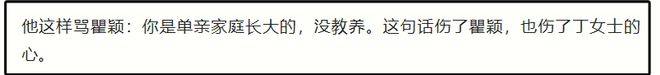 李亚鹏哥哥怒骂瞿颖是单亲家庭长大的孩子,没教养。瞿颖妈妈表示自己和瞿颖爸爸离婚时,瞿颖已经18岁了,不能算是在单亲家庭长大,李亚鹏哥哥的话太伤人,让瞿颖妈妈多年来始终意难平。