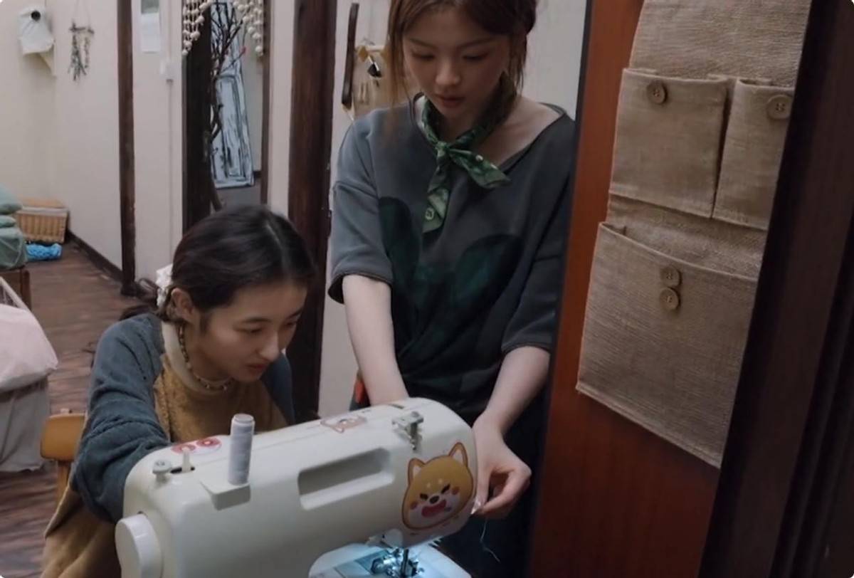 在教导张子枫使用缝纫机时,杨超越展现出令人意外的耐心。"轻轻扶着就好,别让它歪了。"她轻声指导的样子,让观众看到了一个完全不同的杨超越。没有精致的妆容,没有刻意的综艺感,只有最本真的生活状态——素颜、睡衣、敷着面膜,随口说着只带了两个蛋挞的日常琐事。