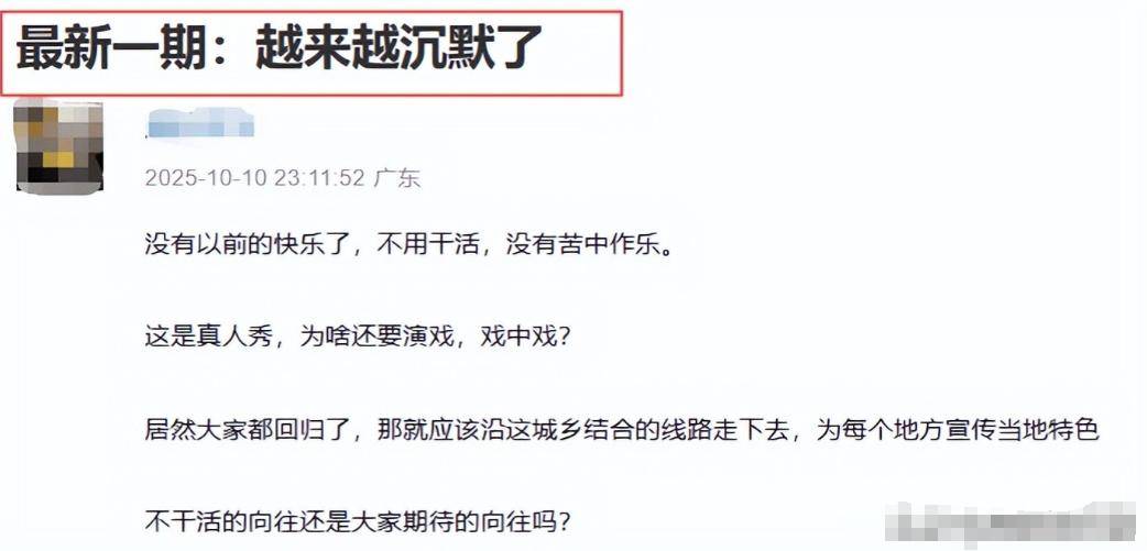 然而,复播后的节目确实缺乏吸引力。为了减轻黄磊做饭的负担,本季节目他几乎没有做饭,大家的氛围也变得异常沉闷。四位常驻嘉宾经常在院子里无所事事,发呆不语。终于,节目迎来了第一批嘉宾——一对话剧演员。虽然介绍中他们的资历看似不俗,但观众却并不认识他们,甚至连何炅都没有听说过他们。当何炅试图通过询问她们住哪里来缓解尴尬时,嘉宾仅回答“住在酒店”,对话也就此结束,场面颇为冷场。