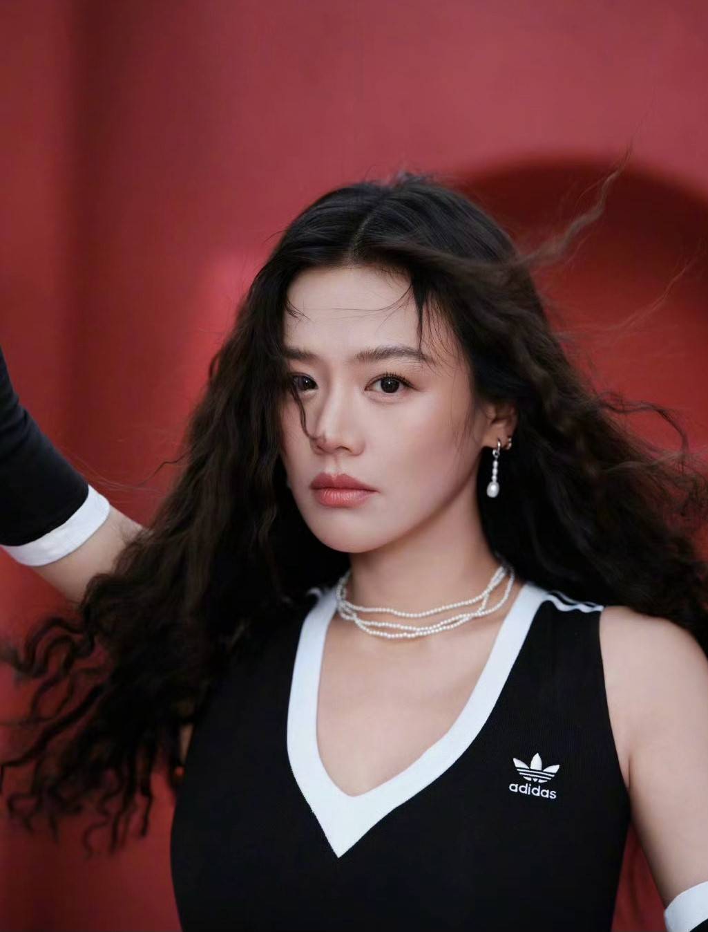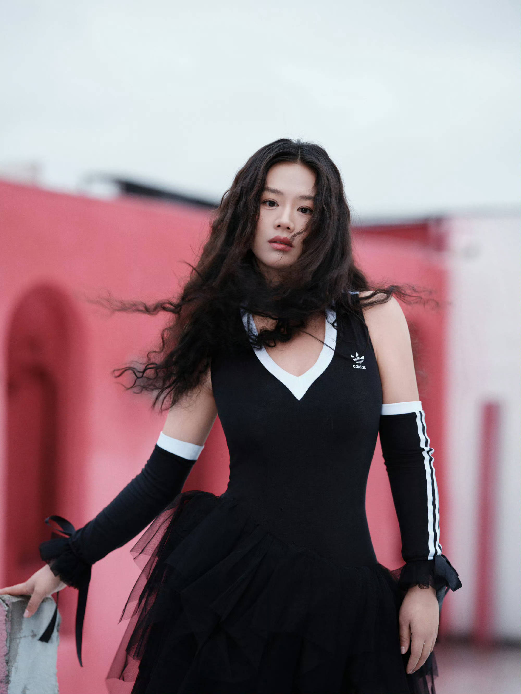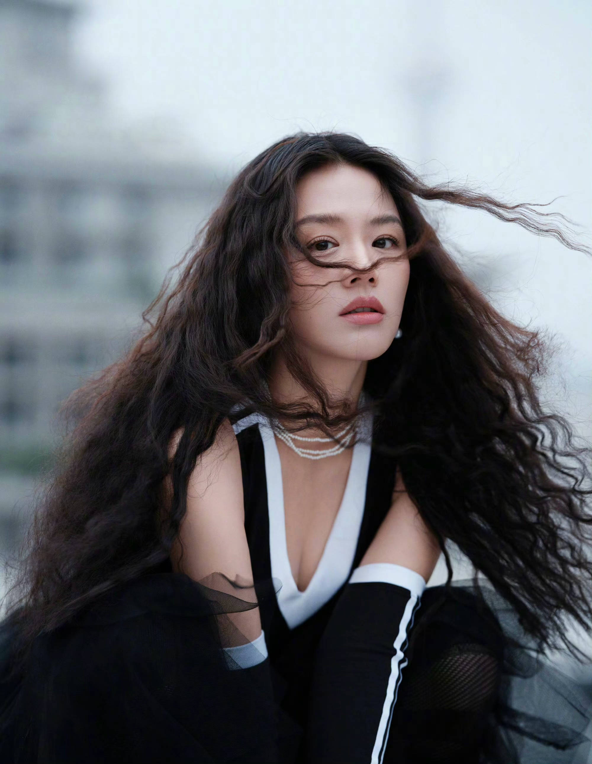 马思纯发丝飞扬,氛围感十足。