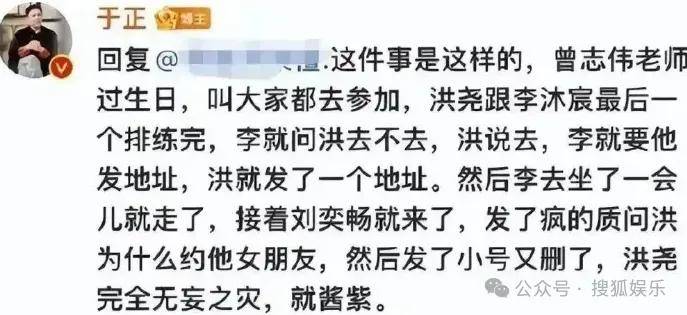 吓得洪尧的老板于正急忙出来辟谣澄清,称是误会一场,顺便曝光了李沐宸跟刘奕畅的恋情