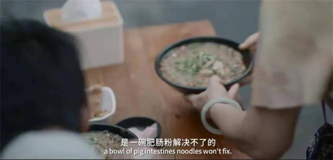 电影则把镜头对准了更加街头巷尾烟火气的肥肠粉。卤制的肥肠沁润在红油里,搭配入味的软糯红薯粉,这一口的麻辣鲜香只有吃了才知道,而美食的治愈力也正如主角所说:没有什么事是一碗肥肠粉解决不了的。