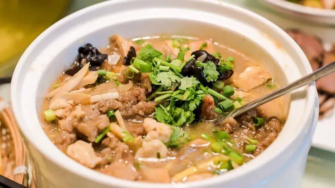 在一碗地道的博爱杂拌里,竹笋与玉兰片永远不会缺席,它们的清香平和了五花肉和丸子的腻,增强了汤的鲜。一碗博爱杂拌的筋骨是小酥肉,食材要用纯瘦肉,这样炸出来的小酥肉才会咸香,略带嚼劲。为了保证口感,鱿鱼的筋膜要去干净,这样吃起来才更有弹性,且不塞牙。制作水氽丸子时,除了要用鸡胸肉外,还要剁入少量的大肉,煮出来的水氽丸子口感才更加鲜香。