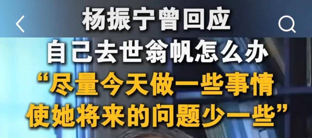 作为一个高智商的代表人物,杨振宁生前连讣告模板都提前预判了,他曾表示相关人士觉得他年纪大早做了准备,会把他一生在科学研究方面的贡献罗列出来,和清华大学发布的讣告一模一样。所以这样的人物说他为翁帆安排好了未来,还是相当有可信度。