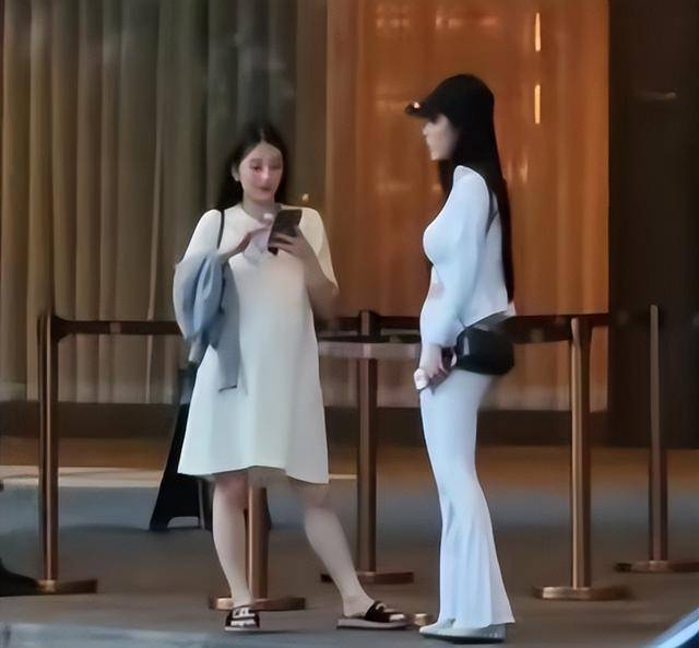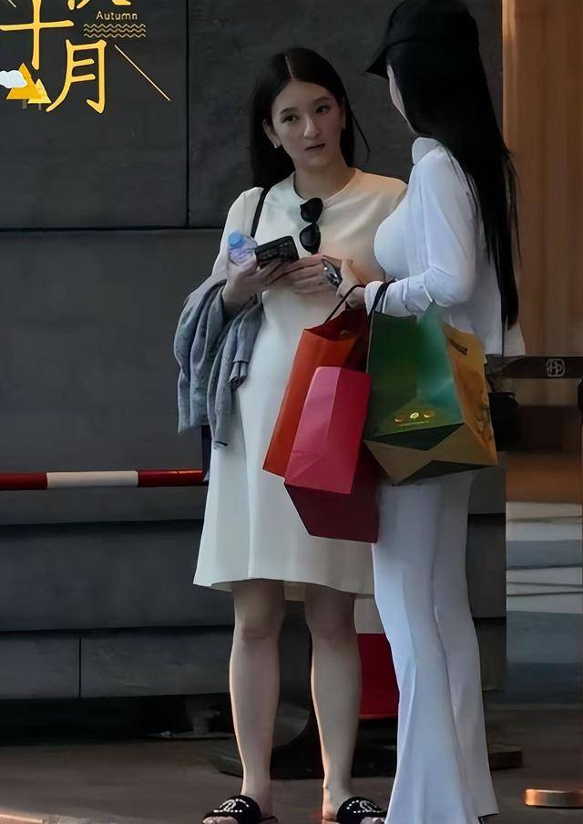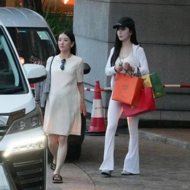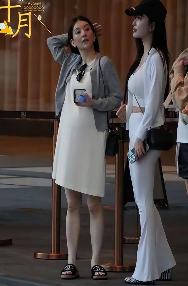 虽然是好友一起逛街,但她也精心打扮了一番,脸上化着淡雅的妆容,脚上穿的还是香奈儿拖鞋,妥妥贵妇装扮。