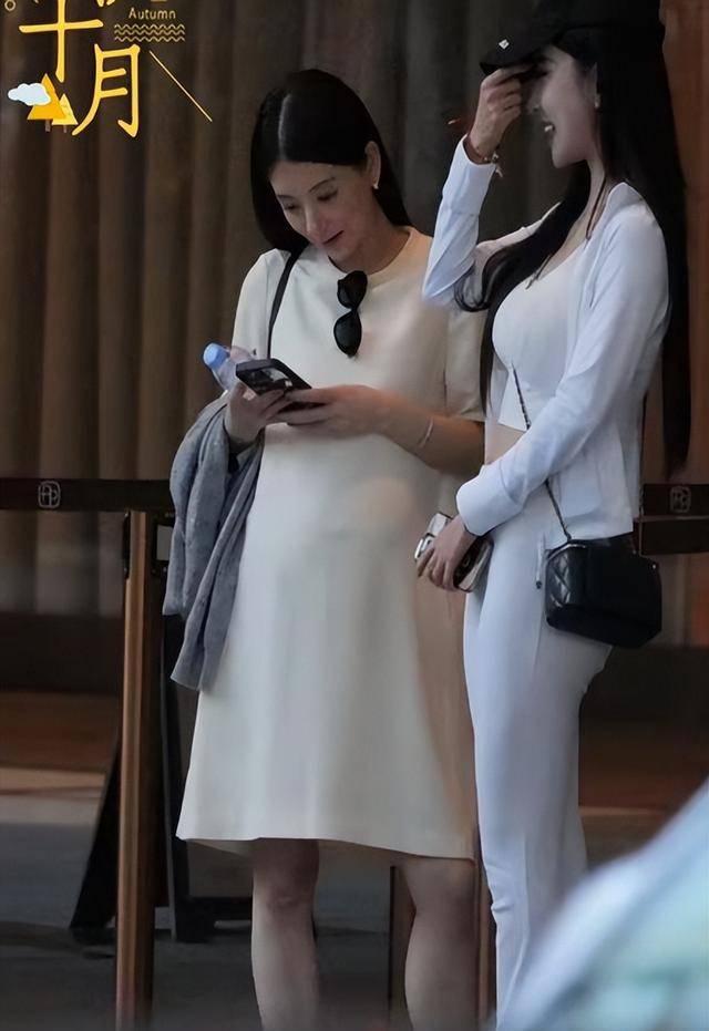 从这张侧脸照片看,根本看不出这居然是个孕妇,也是两个孩子的妈,38岁的她保养的实在是太好了!