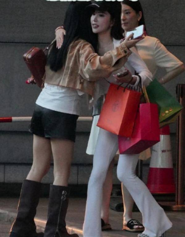 画面中,方媛和闺蜜带着一位助理在商场门口等保姆车,看样子应该是扫货刚结束。