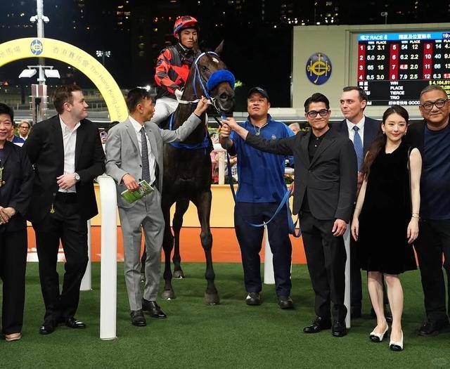 这次,郭富城的赛马罕见夺得第一名的好成绩,他高兴的抚摸宝马一脸欣慰。