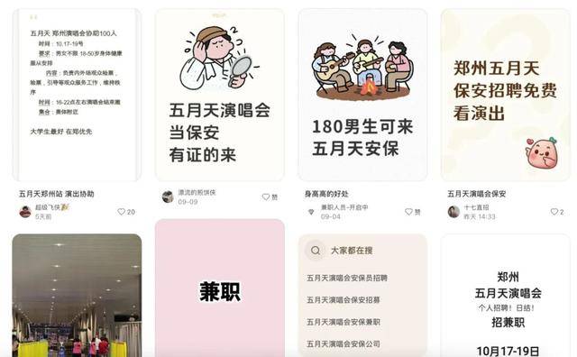 尽管官方并未开放任何兼职岗位,但在小红书、微博、抖音等社交平台上,不少网友曾分享通过应聘演唱会保安、检票员等岗位“免费蹭演出”的经历。这类内容在一定程度上助推了“兼职看演唱会”现象的热度,也容易让人放松警惕。