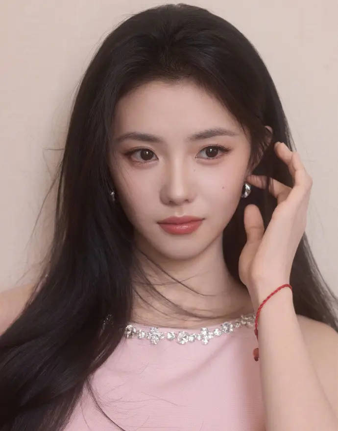 刘浩存单手将头发捋到耳后。
