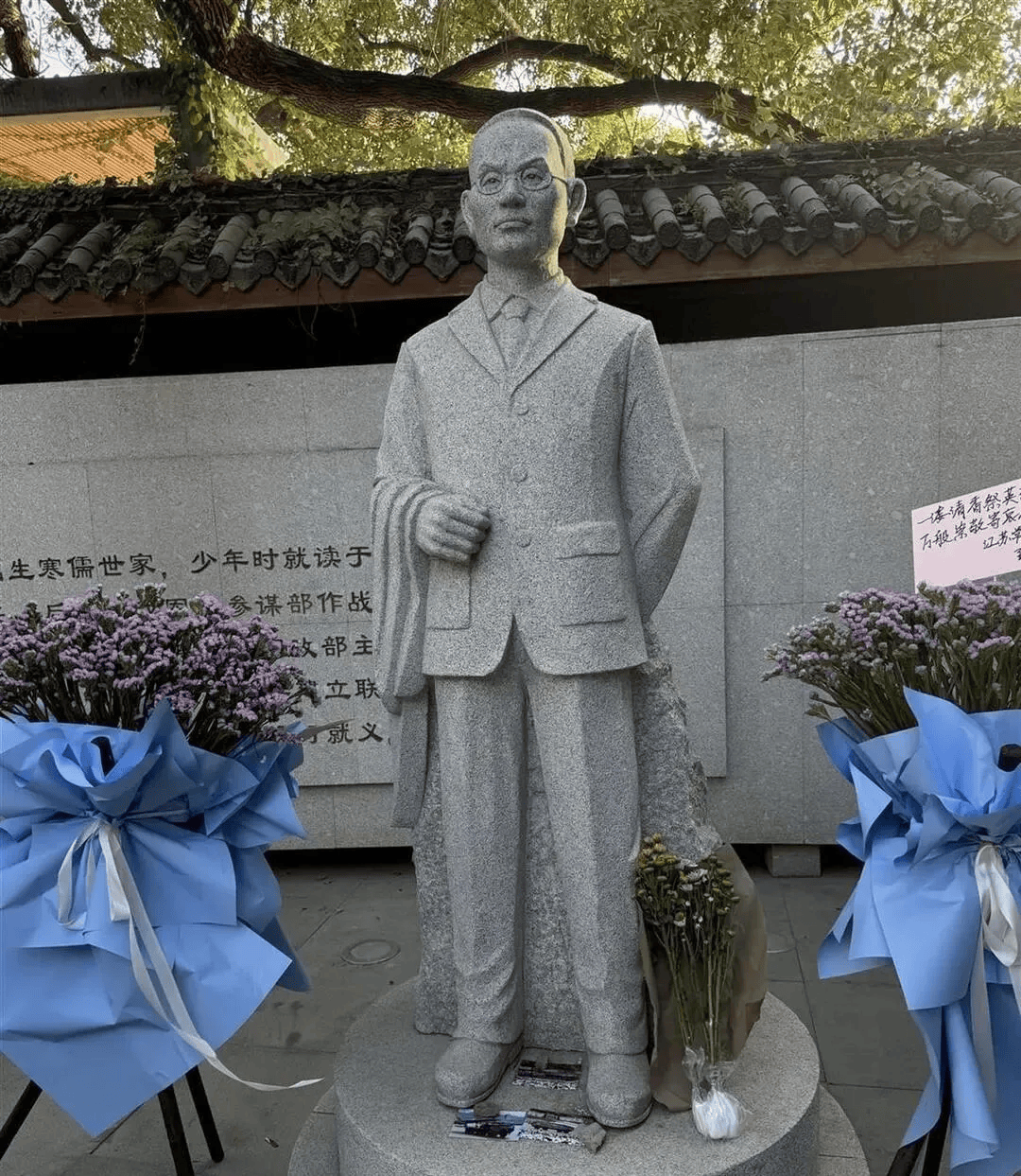 △在北京西山国家森林公园内的无名英雄纪念广场,正中央矗立着以吴石、朱枫、陈宝仓和聂曦为原型的雕像。