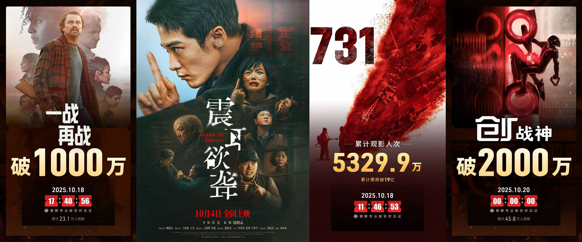 电影《731》第五周收2039.57万排第五,上映32天累计19.08亿,稳居2025年内地电影票房榜第四;