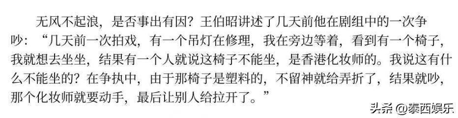 这场风波的起因,要从拍摄期间的一次口角说起。2004年9月18日下午,王伯昭因工作安排与剧组一位化妆师发生争执,虽然争执很快平息,但却为后续的冲突埋下了隐患。