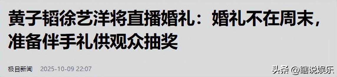极目新闻—— 黄子韬徐艺洋将直播婚礼:婚礼不在周末,准备伴手礼供观众抽奖