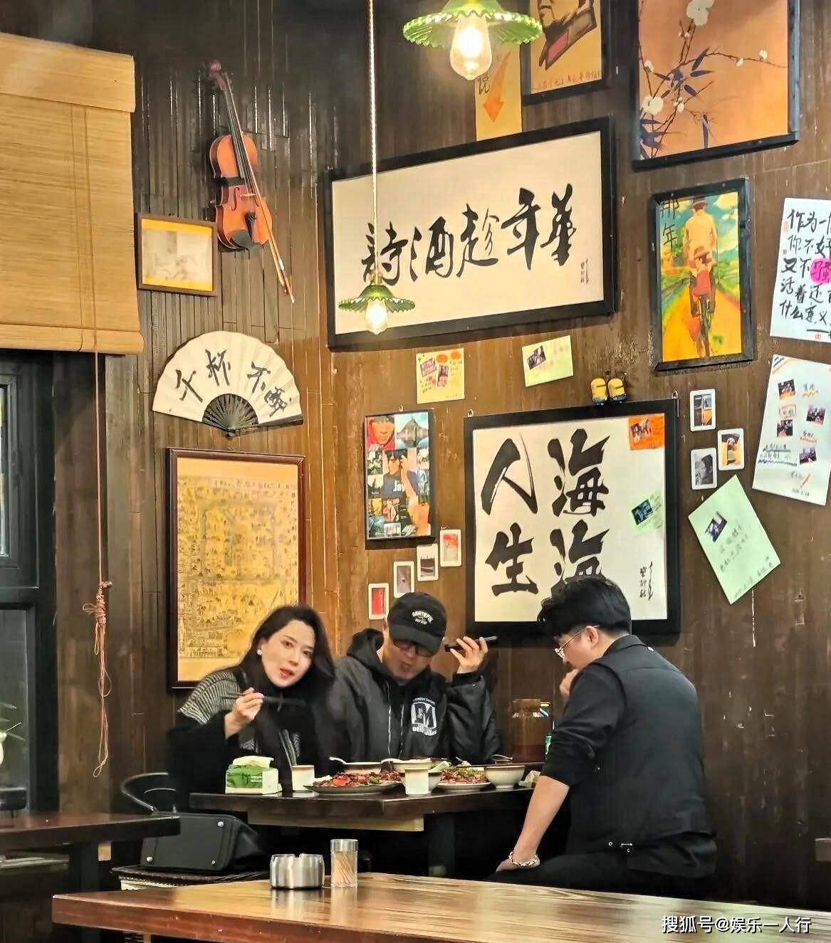 在乌鲁木齐沙依巴克区的餐厅里,暖黄色的灯光照着木质桌椅,空气里全是烤包子和羊肉的香味。 汪峰穿一件黑色夹克,灰色T恤领口有点皱,手里夹着烟,低头回消息。 森林北就靠在他身边,白色露肩上衣衬得皮肤特别白,她脑袋歪在他肩膀上,两人凑一起看手机屏幕,像极了普通夫妻晚饭后的放松时刻。