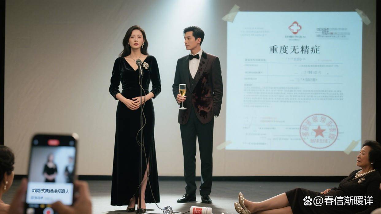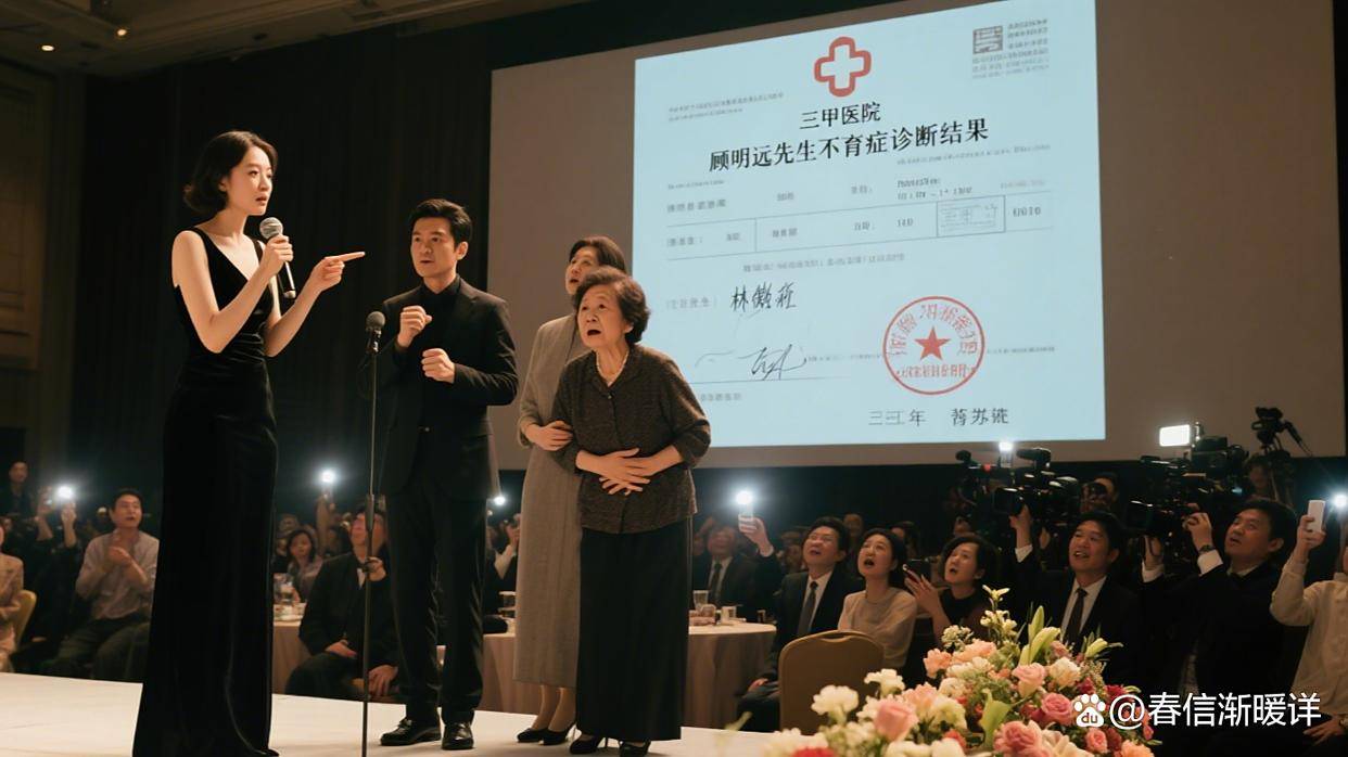李雪从容地走到台前,从司仪手中接过麦克风。她的声音清晰而冷静:“各位嘉宾,屏幕上显示的是赵磊先生的生育能力检查报告。报告证明,他因多年前的车祸损伤,自然生育的可能性几乎为零。”