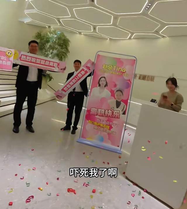 据了解,赵总在过往的工作中,对员工非常友善,按理来说,她的离开应该会让这些员工感到伤心,但画面中的人员却非常高兴,甚至还在现场竖起了易拉宝,恭喜赵总的离职。