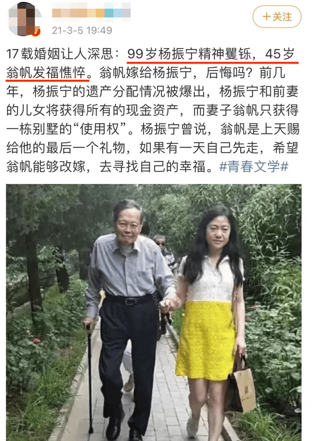 甚至有网友说杨老至少有10年生命是翁帆给的。