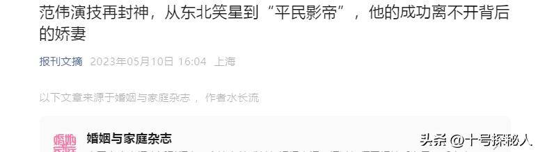 婚姻与家庭杂志.:范伟演技再封神,从东北笑星到“平民影帝”,他的成功离不开背后的娇妻