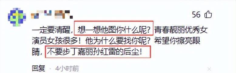 有人说:“现在年轻又漂亮的演员多得很,这男孩图啥呢?一看就懂。”也有人直接拿丁嘉丽和孙红雷的例子来提醒她,劝她“千万别走老路”啦。