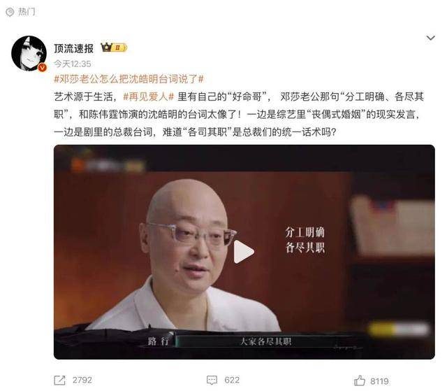 现在热搜上挂的都是“邓莎老公怎么把沈皓明台词说了”“再见爱人rapper夫妇”这种话题,跟之前大家集体上头吐槽麦琳的破圈热度比,完全不是一个量级。