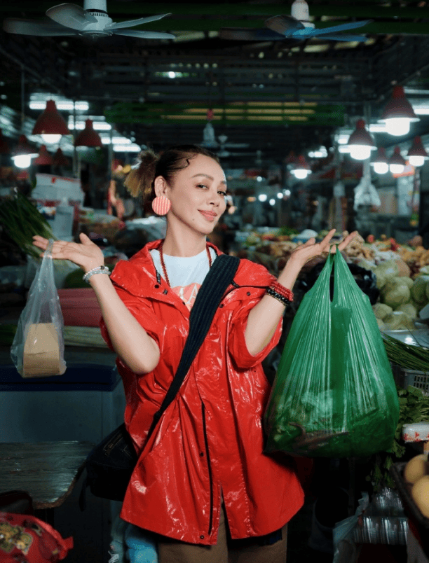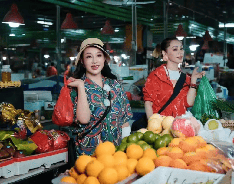 10月16日,宁静与刘晓庆综艺拍摄,去菜市场买菜的画面