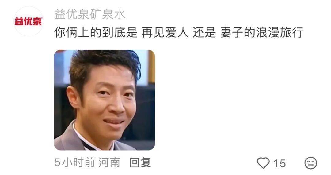 这又让一开始搬个小板凳等着看分手的品牌急了,这是「再见爱人」,还是「妻子的浪漫旅行」呀。