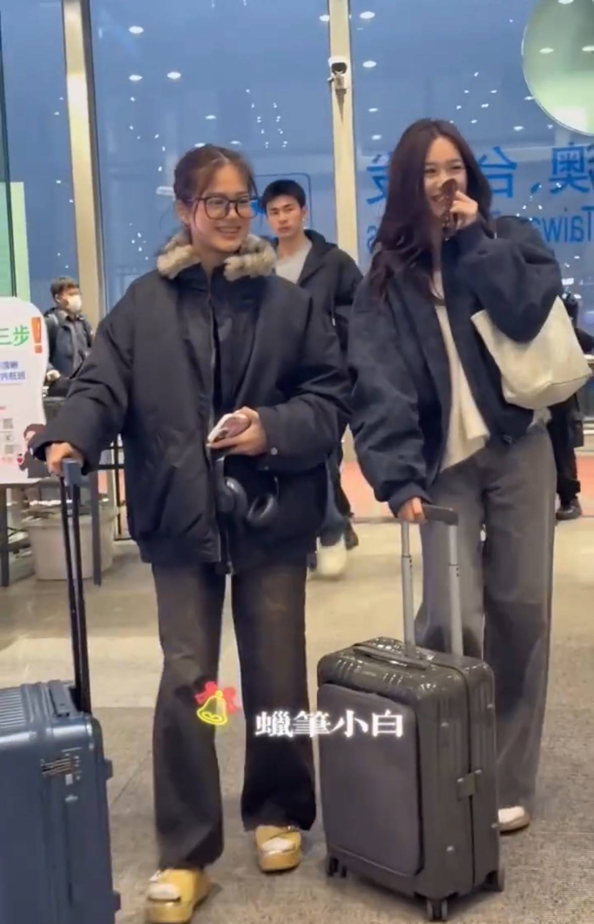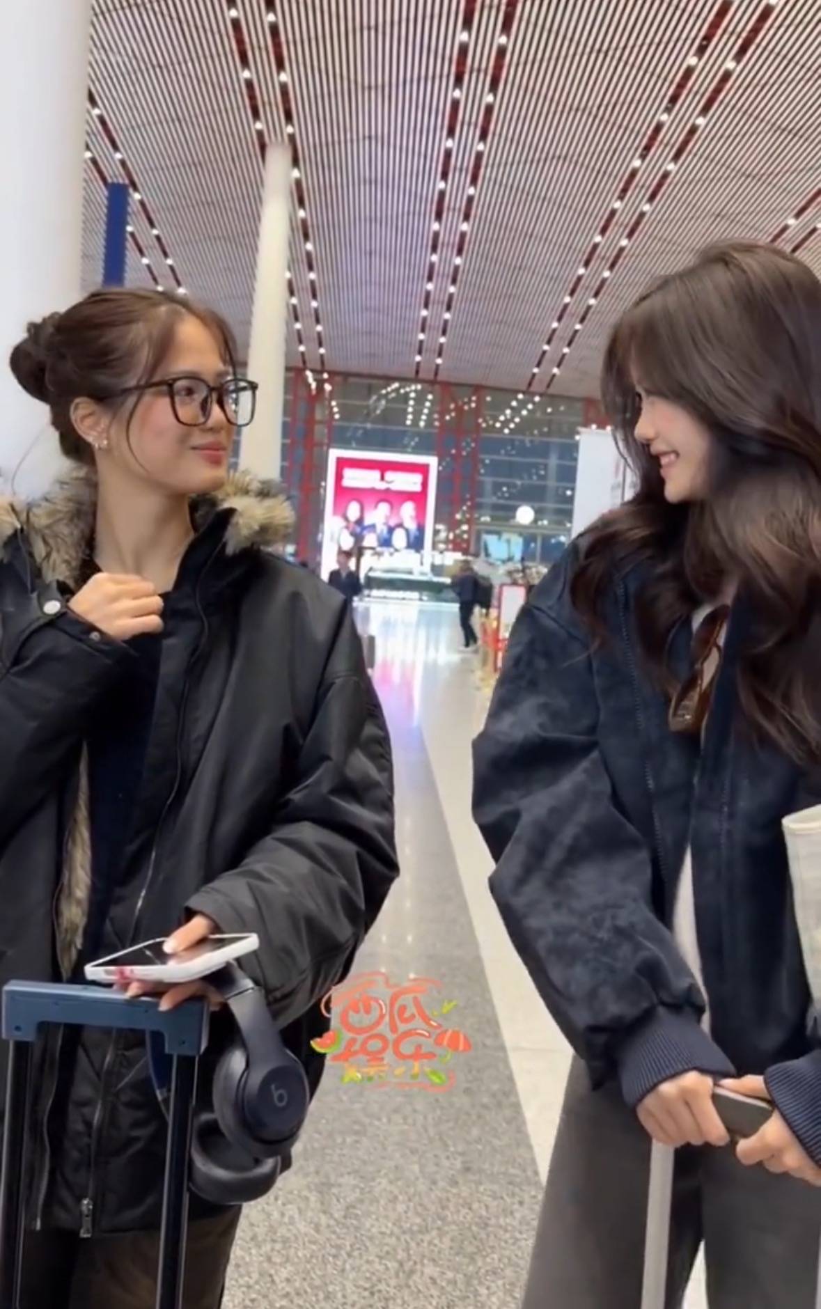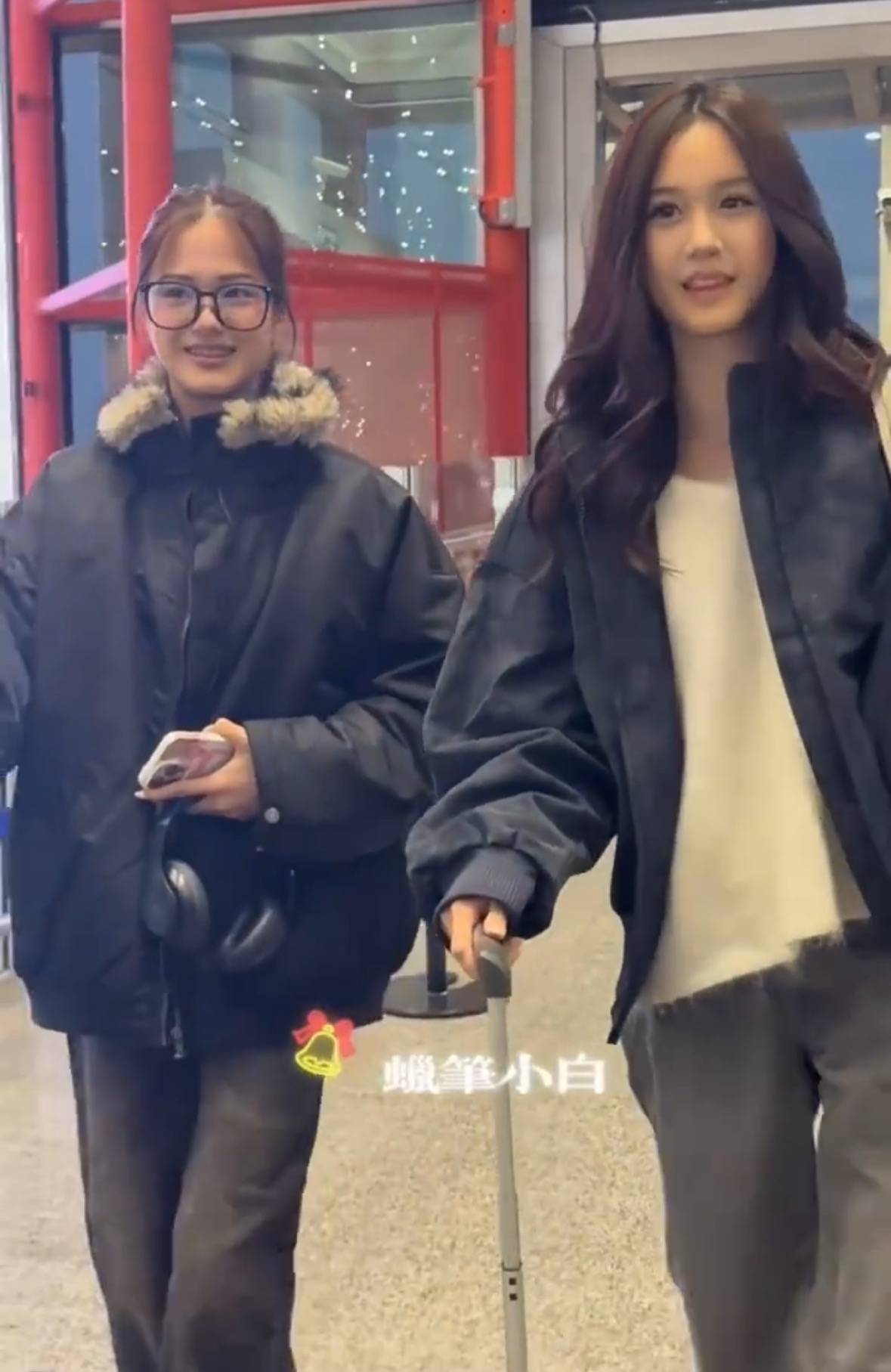 两姐妹走在机场,15岁考拉身高瞩目。