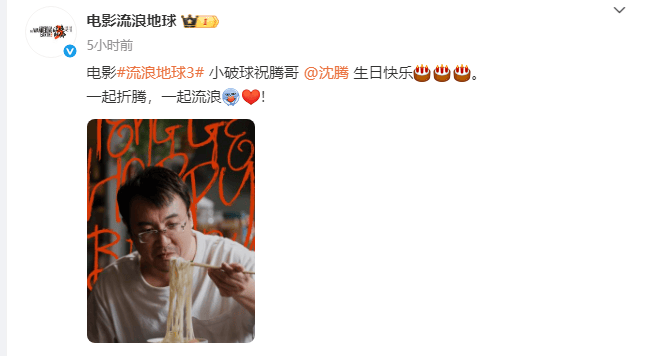 搜狐娱乐讯 电影《流浪地球3》发文庆祝主演沈腾生日快乐,同步释出沈腾剧照,长寿面吃上了。此前影片已定档2027大年初一上映,沈腾加入该系列。