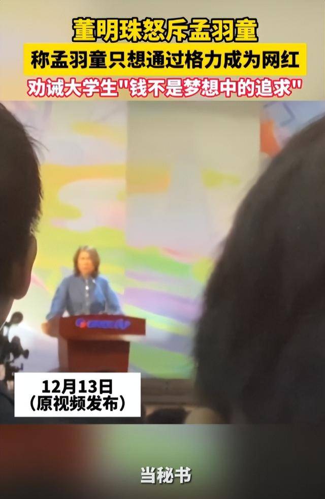 两人分道扬镳后,董明珠也是丝毫不留情面,在格力大学生入职仪式上,将孟羽童当成了典型来批评。